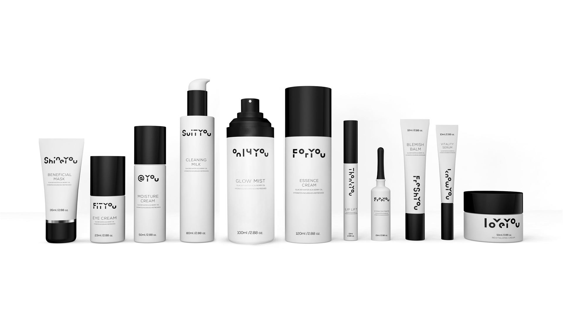 在包装设计上,我们将YOU的图形特点延展到其他字母上,开发出一系列与“YOU”主题相关,如“THANK YOU”的字母图形,从侧面让品牌形象更加丰满,并加深品牌与客户之间的情感连接。